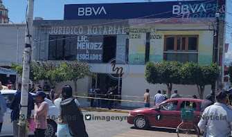 En plena luz del día y a unos metros de la presidencia y comandancia de Huejotzingo, sujetos armados asaltaron la sucursal de Bancomer, se habla de un muerto y un lesionado, la zona está acordonada.