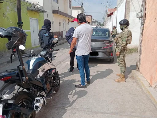 San Martín Texmelucan, Pue. – La tarde de este miércoles 12 de febrero, los Elementos de Seguridad Pública realizaban patrullajes de vigilancia en la junta auxiliar de santa María Moyotzingo, y detectaron un vehículo color negro con placas del estado de México, por lo que los uniformados se acercaron a preguntar si necesitaban algún apoyo.